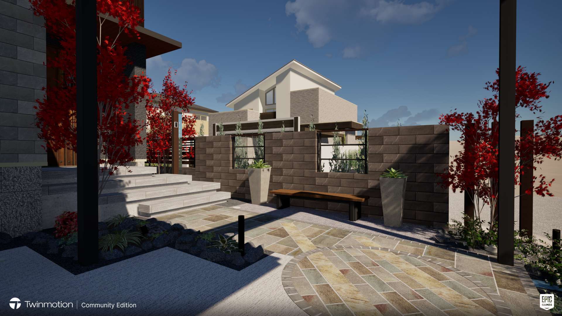 有限会社アルティコでは3Dイメージパース図でエクステリアプランをご提案しております。EpicGamesのソフトを使用しており、よりリアルな3Dイメージ図で完成図をご覧いただきイメージを共有致します。