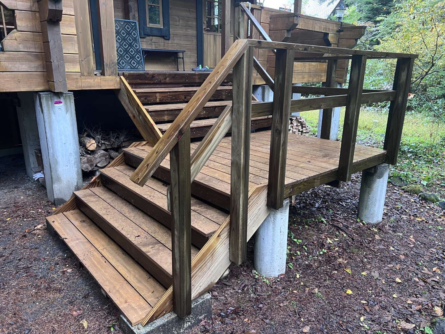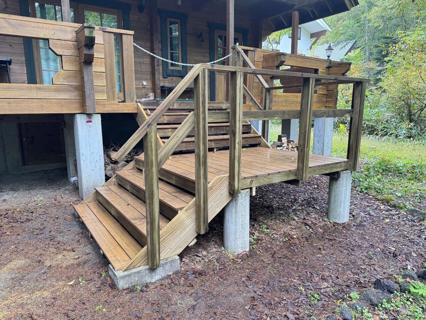戸建て リフォーム ウッドデッキ 階段 軽井沢 デッキ階段 改修工事 軽井沢町でデッキ階段の改修工事を行わせていただきました。10年保証の防虫防腐材の天然木を使用し長くお使いいただければと思います。廃材は薪として使われるとのことで程用サイズにカットさせていただきました。 場所 長野県軽井沢町 1 / 1 前の施工事例 戸建て 軽井沢 枕木を使ったアプローチ ライティング 次の施工事例 戸建て 佐久穂町 人工木デッキとテラス屋根