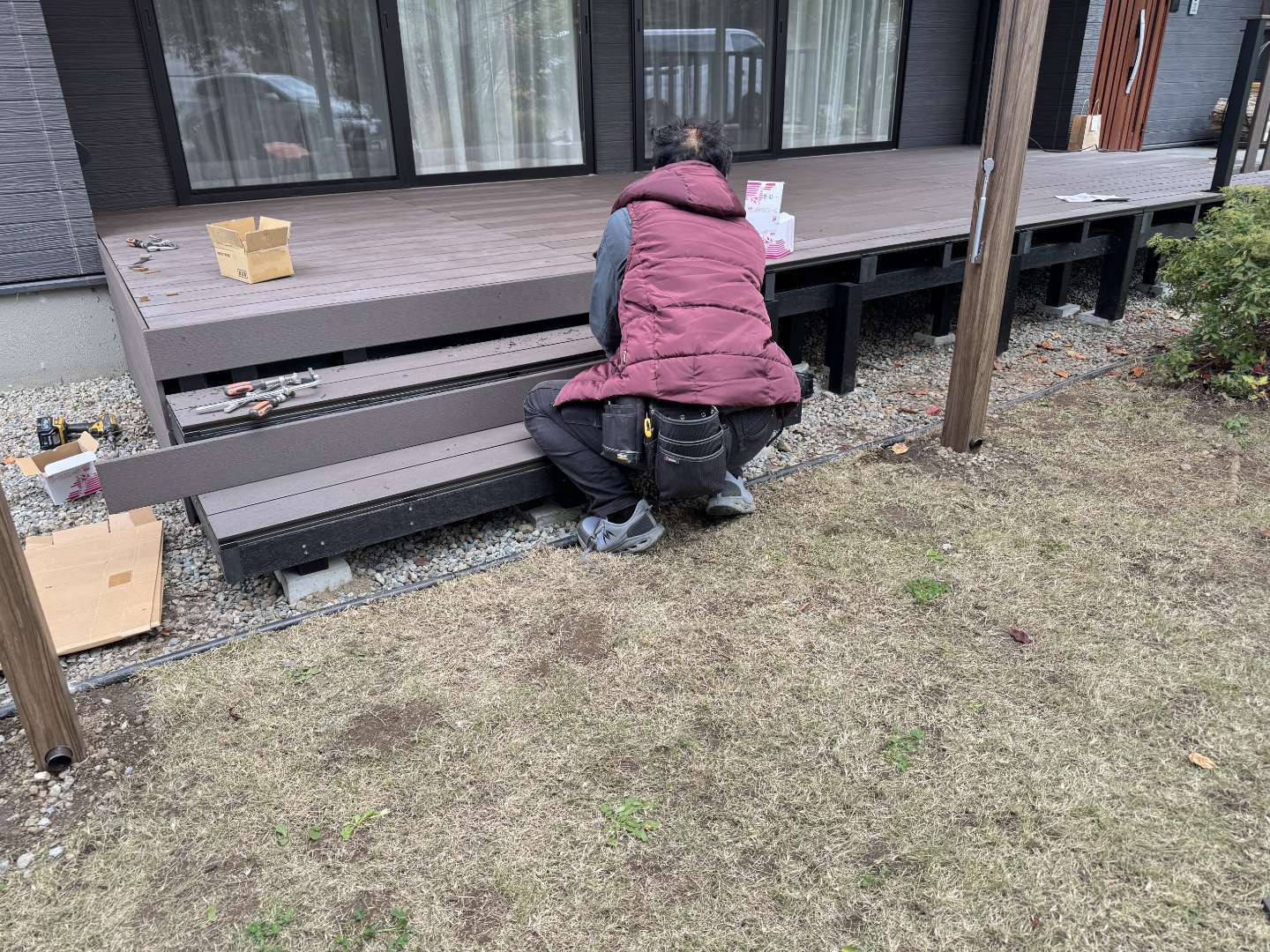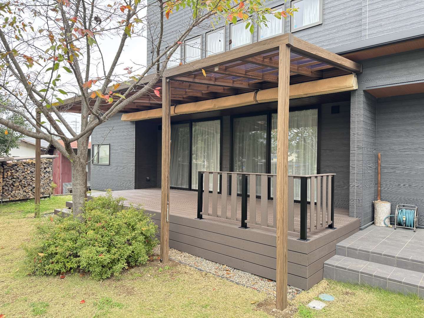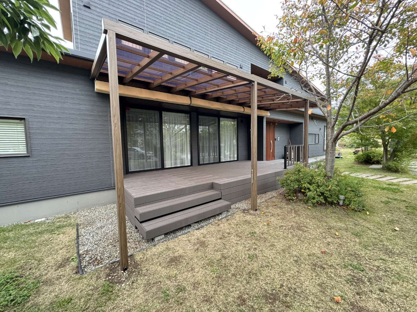 戸建て リフォーム パーゴラ ウッドデッキ 佐久穂町 人工木デッキとテラス屋根 佐久穂町でウッドデッキの改修工事とテラス屋根の工事をさせていただきました。ウッドデッキは人工木を使用しており、メンテナンスフリーで長くお使いいただけます。テラス屋根も設置させていただき、お庭を眺めながらゆったりとお過ごしいただけるかと思います。 場所 長野県佐久穂町 1 / 1 前の施工事例 戸建て 軽井沢 デッキ階段 改修工事 次の施工事例 戸建て 軽井沢町 ウッドデッキ塗装