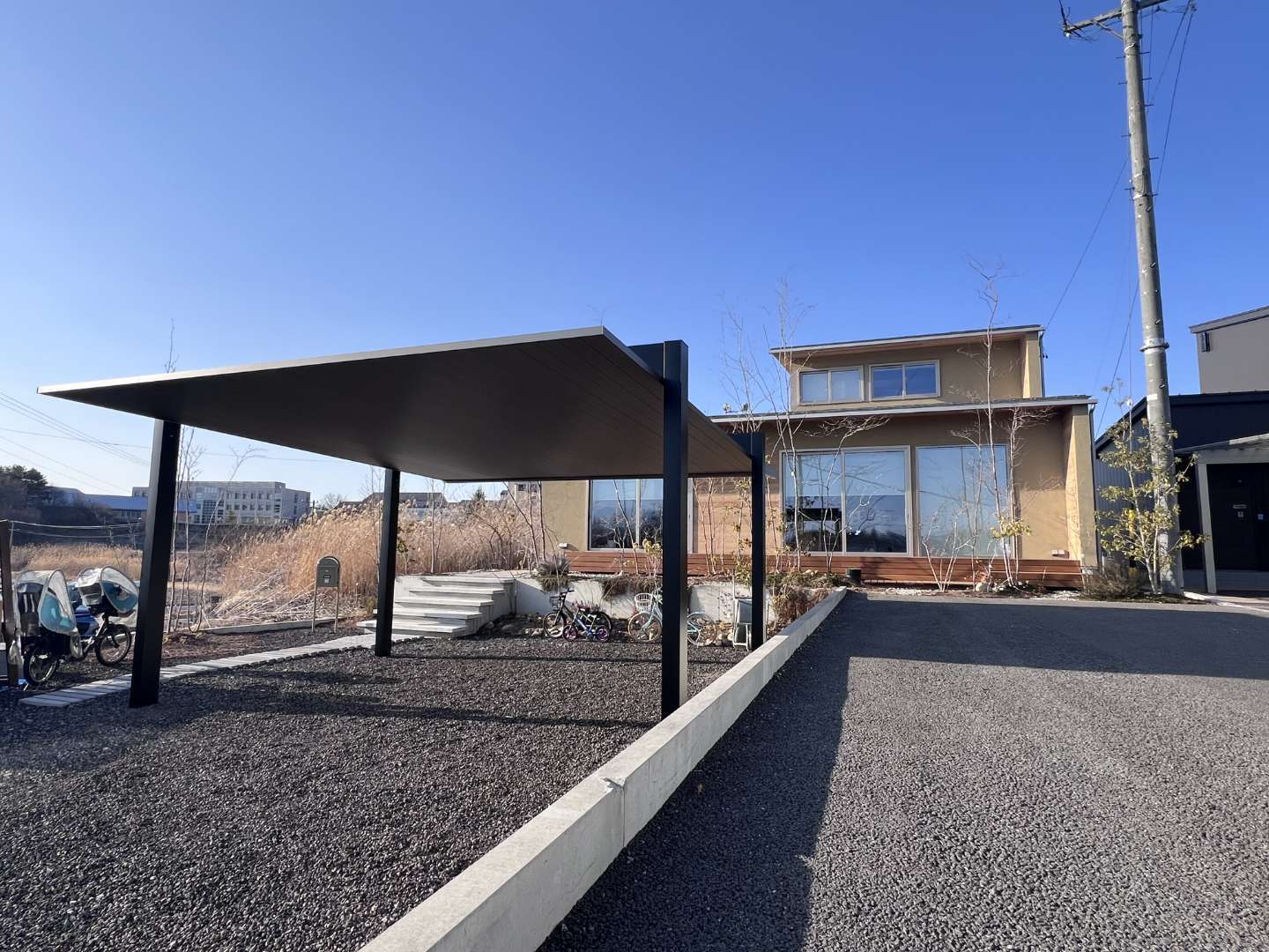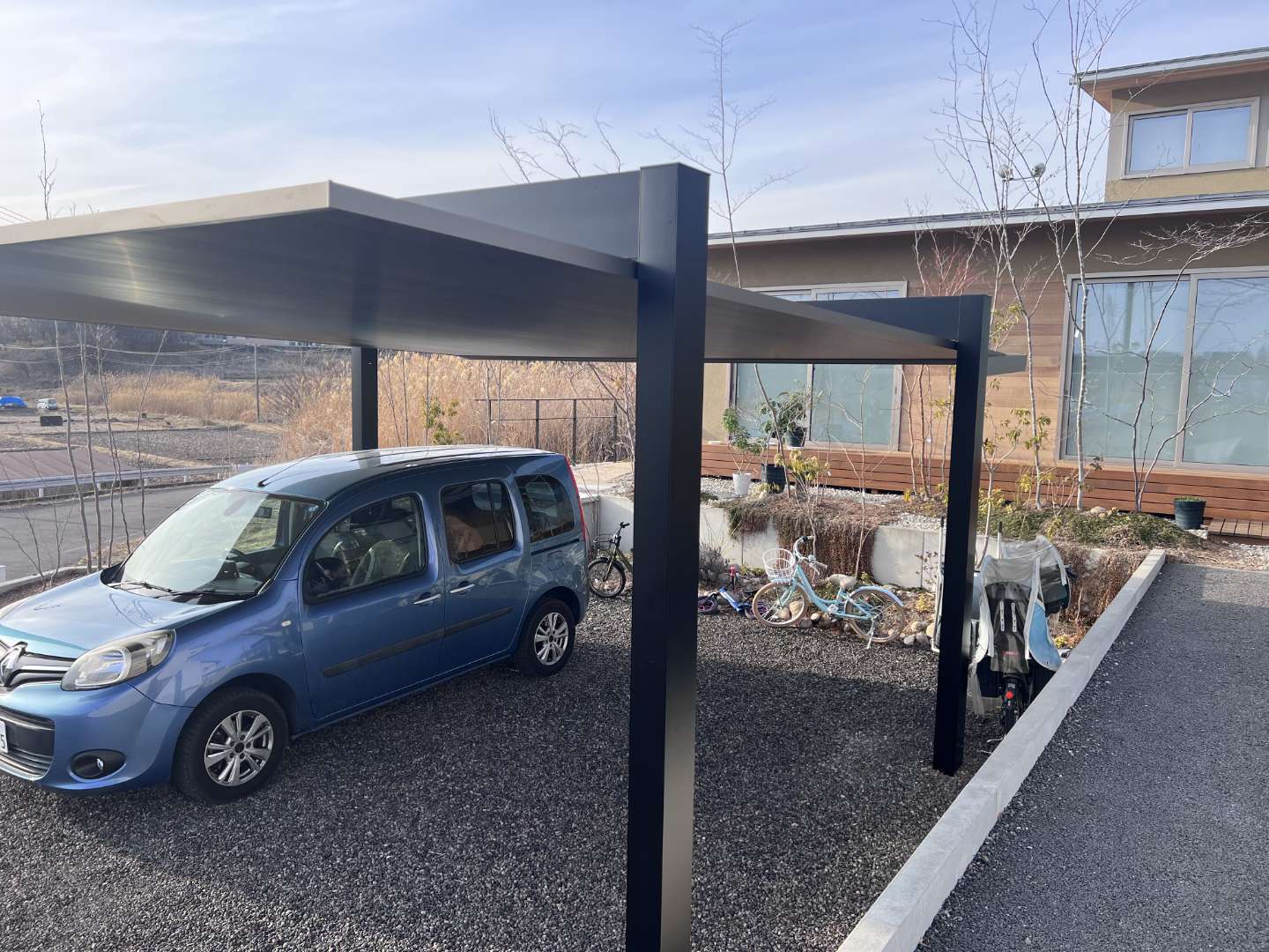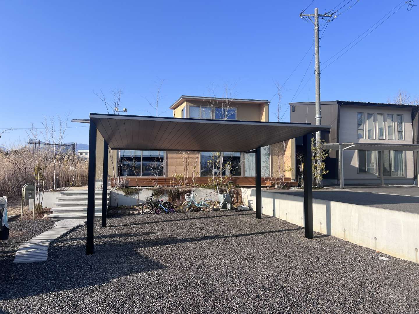 New 戸建て カーポート 門柱 フェンス 佐久市 カーポート工事 三協アルミ FⅡ カーポート・ポスト・手摺フェンスの工事を行いました。フラット屋根のカーポートで見た目スッキリな印象です。 1 / 1 前の施工事例 戸建て 佐久市 人工木デッキ改修工事